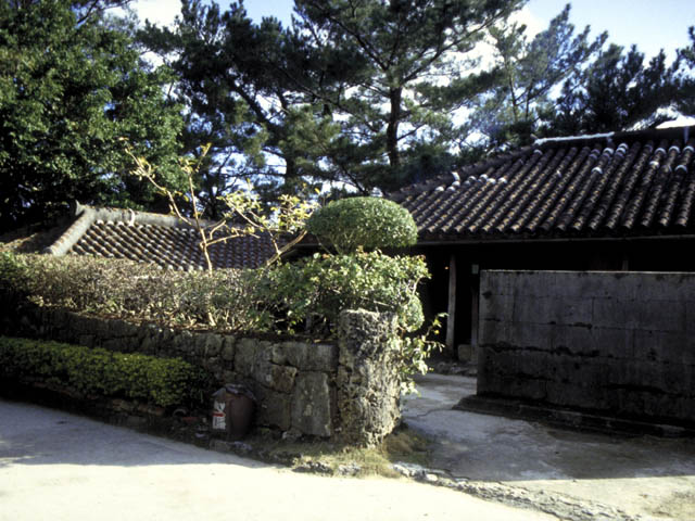 旧玉那覇(きゅうたまなは)家の様子です。ヒンプンとよばれる壁です。