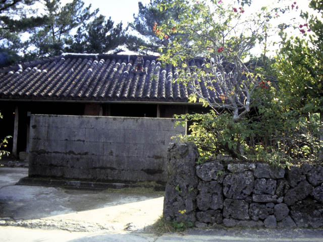 | 旧玉那覇(きゅうたまなは)家の様子です。ヒンプンとよばれる壁です。