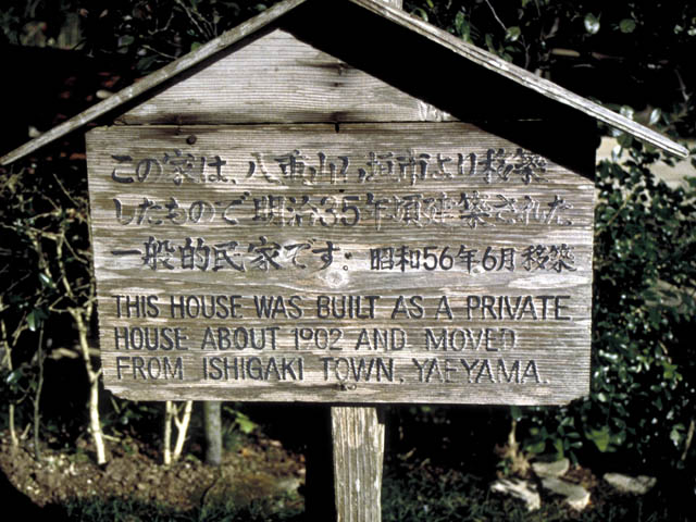| 旧西石垣家です。この家は八重山石垣市より移築したものです。明治ごろの沖縄の一般的な建物です。