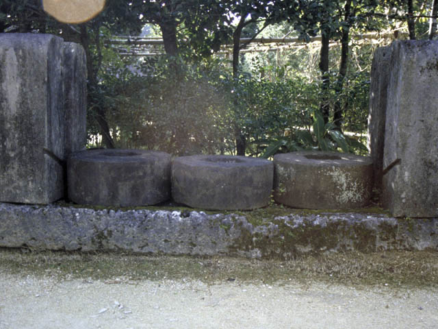 | 石でできている砂糖車というものです。さとうきびから砂糖を作る時に使いました。