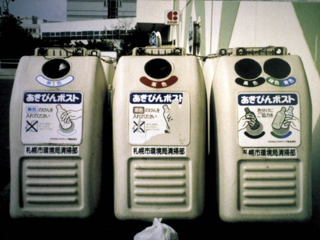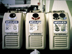 | ゴミは分別することによってリサイクルできます。これはゴミの種類によって分別するゴミ箱です。