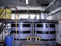 | 工場にはラーメンを作るための機械だけでなく、いろいろな設備が必要となります。使った水をきれいにする廃水処理機械などが必要です。地下水を汲み上げるポンプ、給湯用のボイラー、木箱などを洗う洗浄機械などです。