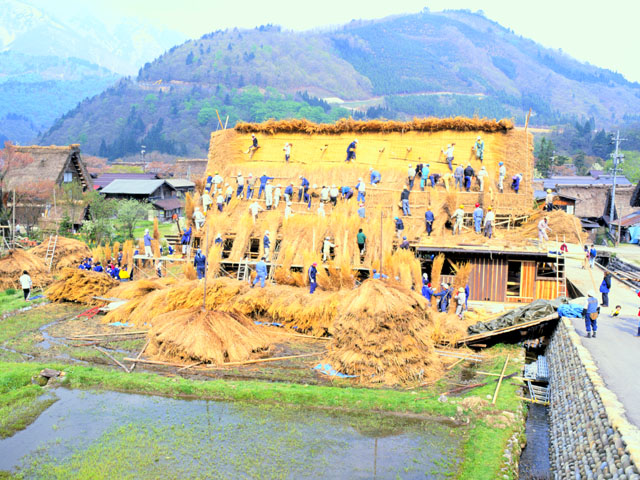 2000年5月・松古家屋根葺きにて。 |