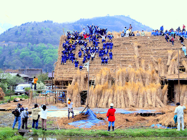 2000年5月・松古家屋根葺きにて。