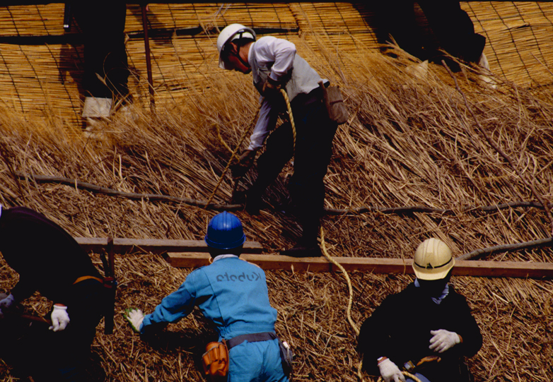 2000年5月・松古家屋根葺きにて。 |