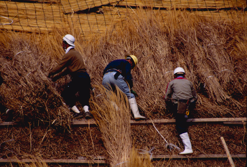 2000年5月・松古家屋根葺きにて。 |
