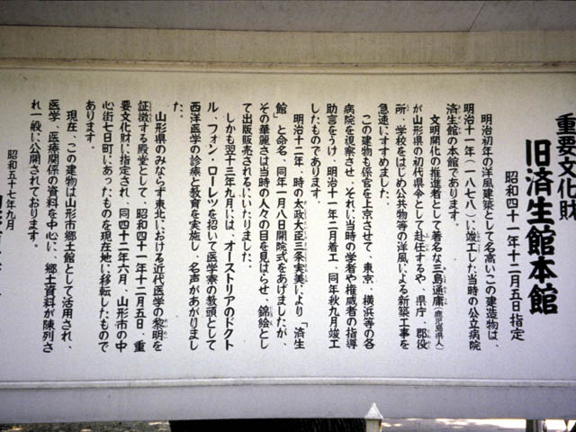 | 旧済生館本館は、山形県の病院でした。現在は、郷土資料や医療関係の資料を展示する「山形市郷土館」として公開されています。洋風建築と和風建築を融合した技法が用いられた見事な建物が人々の目を惹きます。