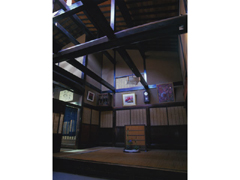 土蔵は、特に古い歴史を持つつくりとなっています。天井戸は、からくり戸。戸は、伊勢湾台風の時に閉めたくらいで、普段は開けたまま。(院長談) 玄関戸は、引き上げ式となっている。 |