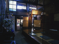 土蔵は、特に古い歴史を持つつくりとなっています。天井戸は、からくり戸。戸は、伊勢湾台風の時に閉めたくらいで、普段は開けたまま。(院長談) 玄関戸は、引き上げ式となっている。 |