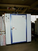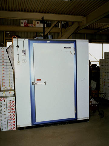 | 苺の予冷庫。苺の鮮度がおちないように大きな冷蔵庫で保管をする。