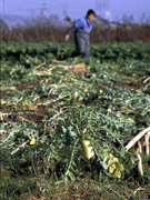 | 守口大根の畑。岐阜市則武付近では,砂地を利用して細長い守口大根を栽培している。