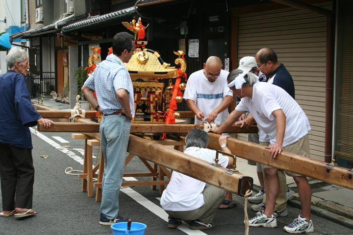 | 神輿の組み立て作業の様子 | |