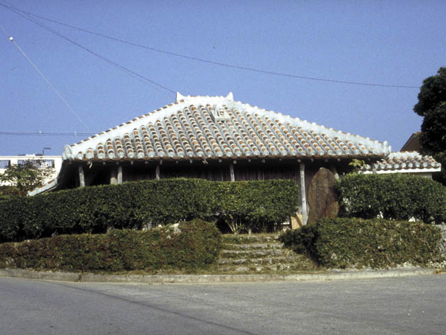 | 台風に備えて丈夫な瓦屋根があります。屋根には家の神様であるシーサーがのっています。
