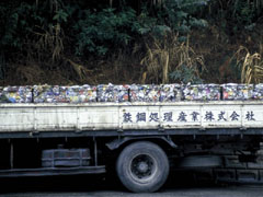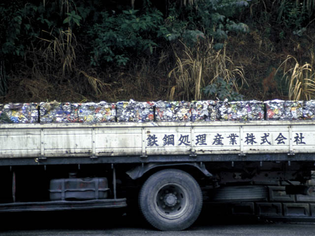| ゴミを押し潰して小さくまとめて鉄鋼処理をする会社に運びます。