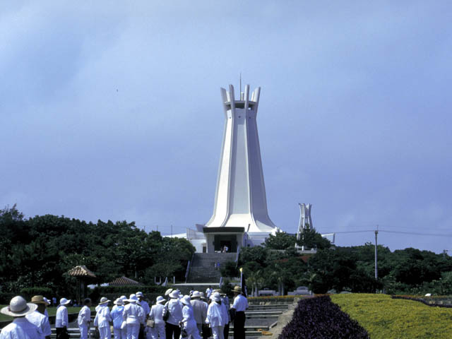 | 沖縄県民の平和への願いをこめて、昭和53年に建てられた七辺形の建物です。堂内には、沖縄出身の山田真山氏の手による大観音像が鎮座しています。