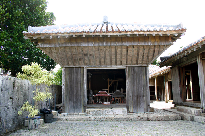 | この高倉は、沖縄在来の形式ではなく、住居と同じ角柱を用い、壁・床とも板張りであるのが特徴である。
